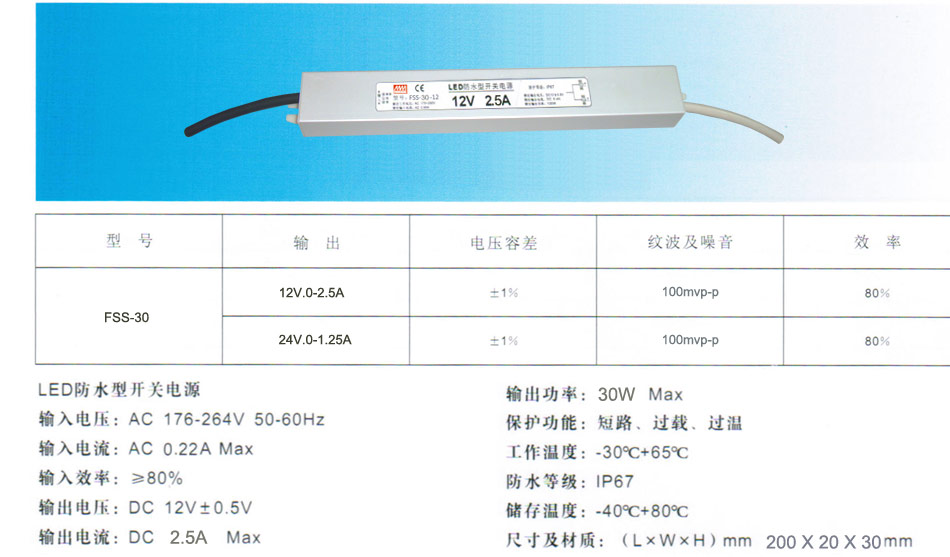 明纬实业 明纬科技开关电源FSS-30