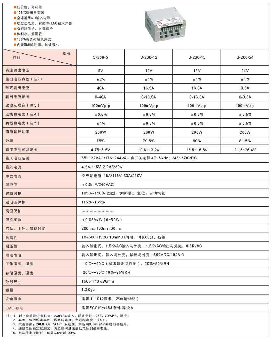上海明纬实业有限公司开关电源S-201