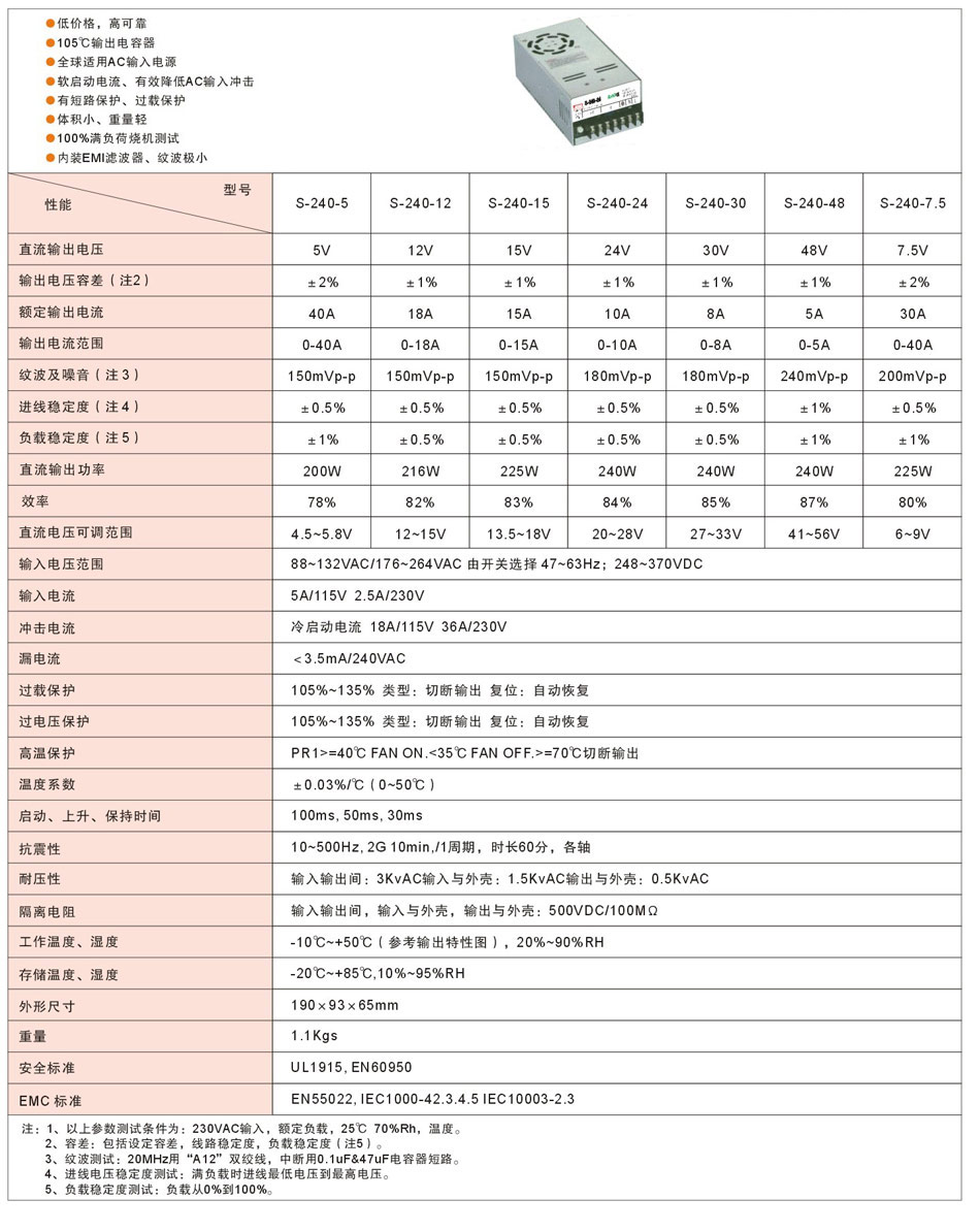 上海明纬实业电源 工控电源S-240